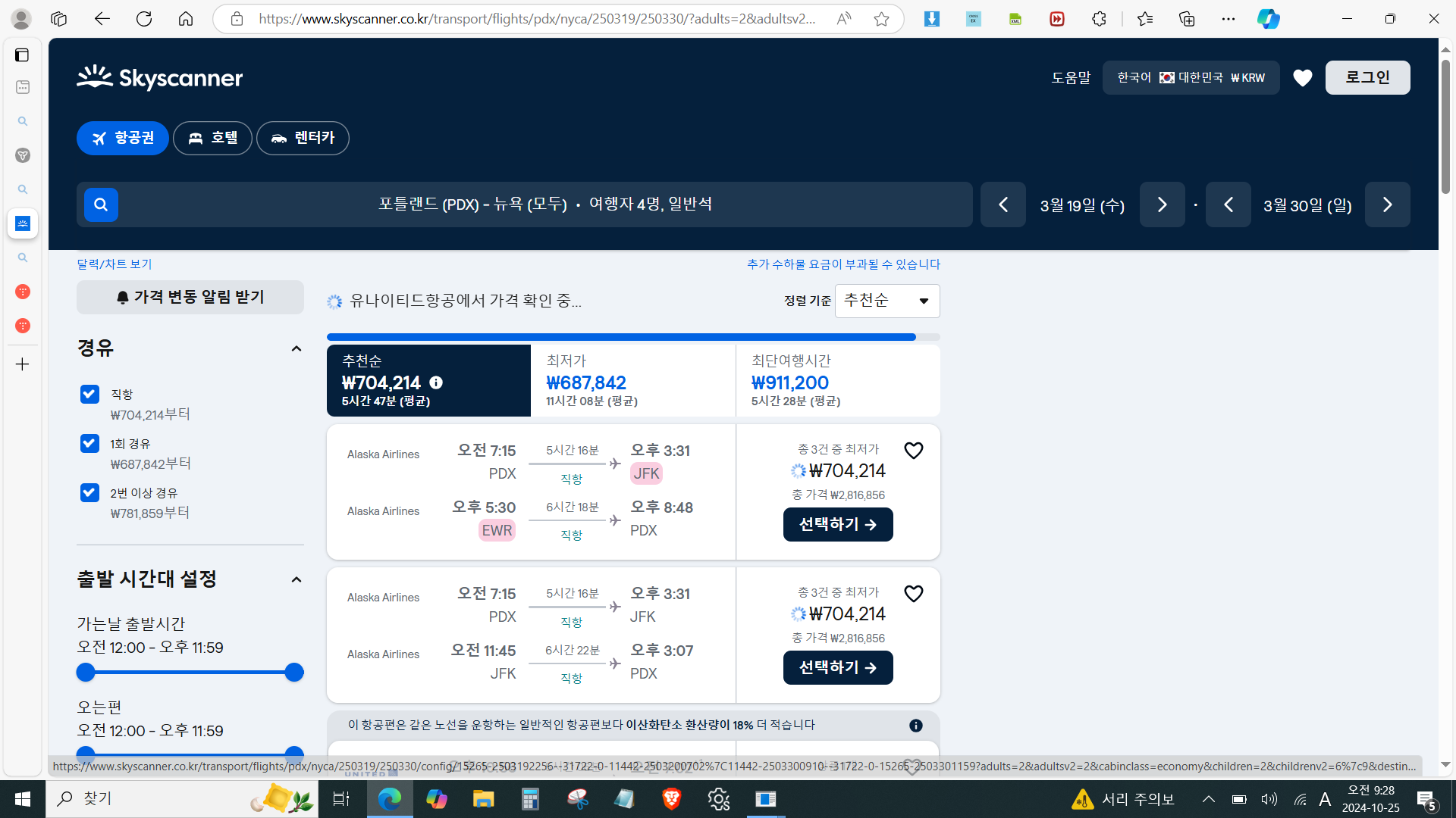 3. 뉴욕 5시간반 : 약70만 총280만 왕복